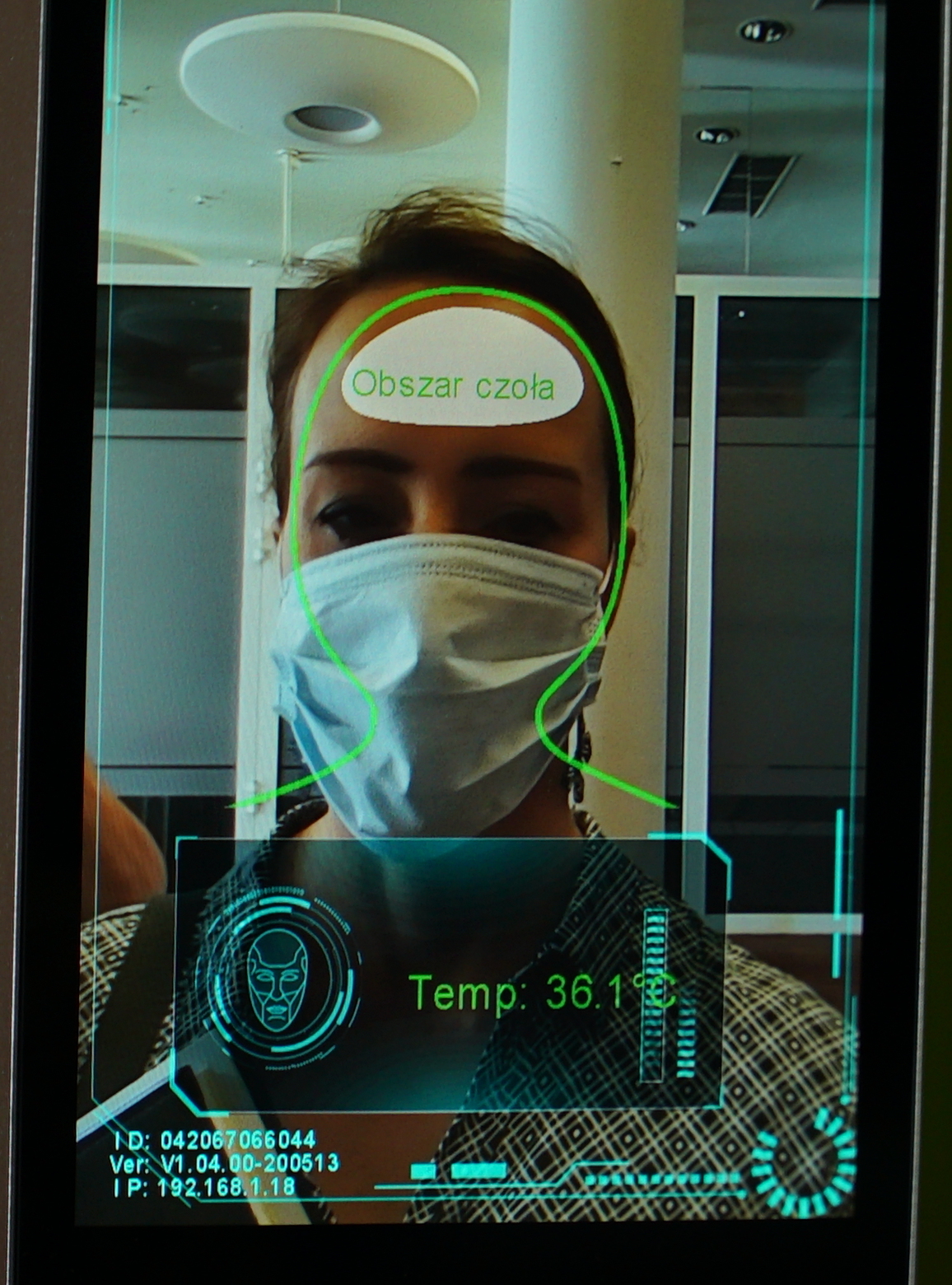 Urządzenie sprawdzi czy odwiedzający nosi maseczkę na twarzy.